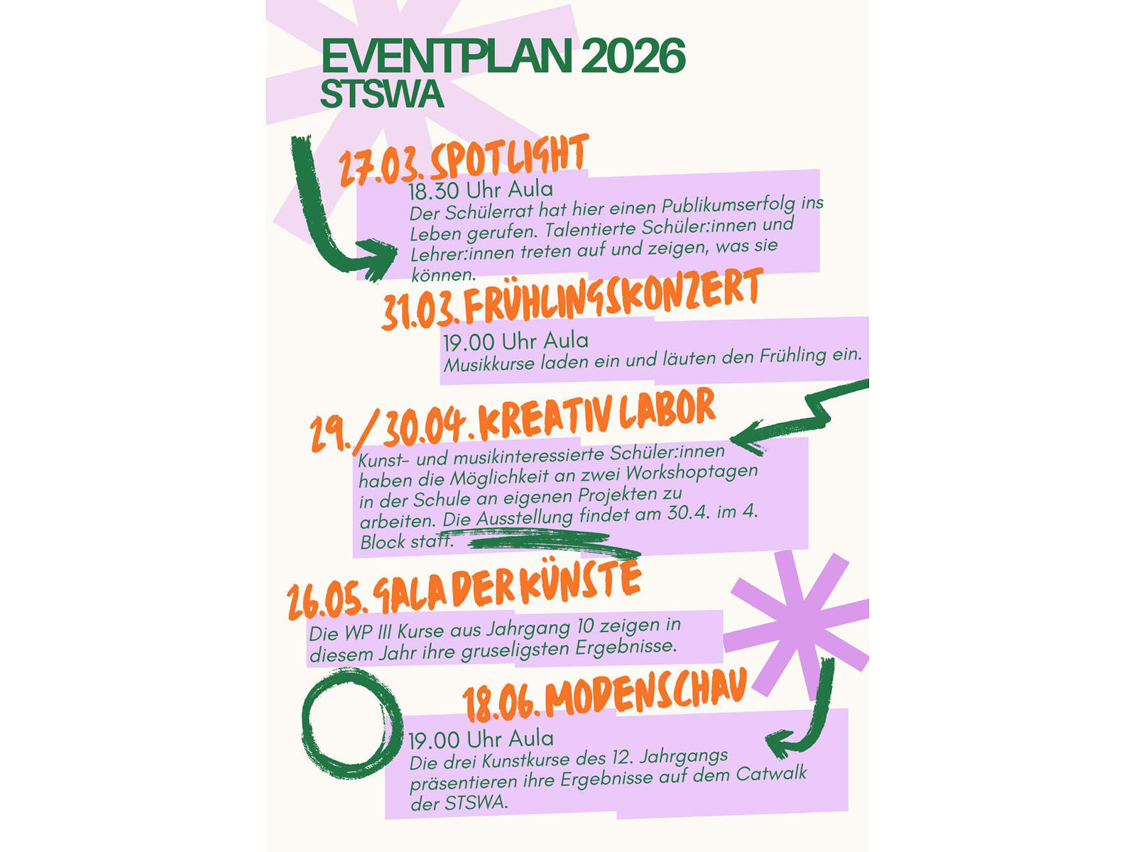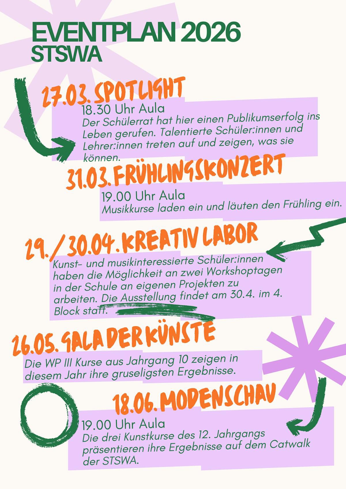 Eventplan der Künste für das nächste Halbjahr