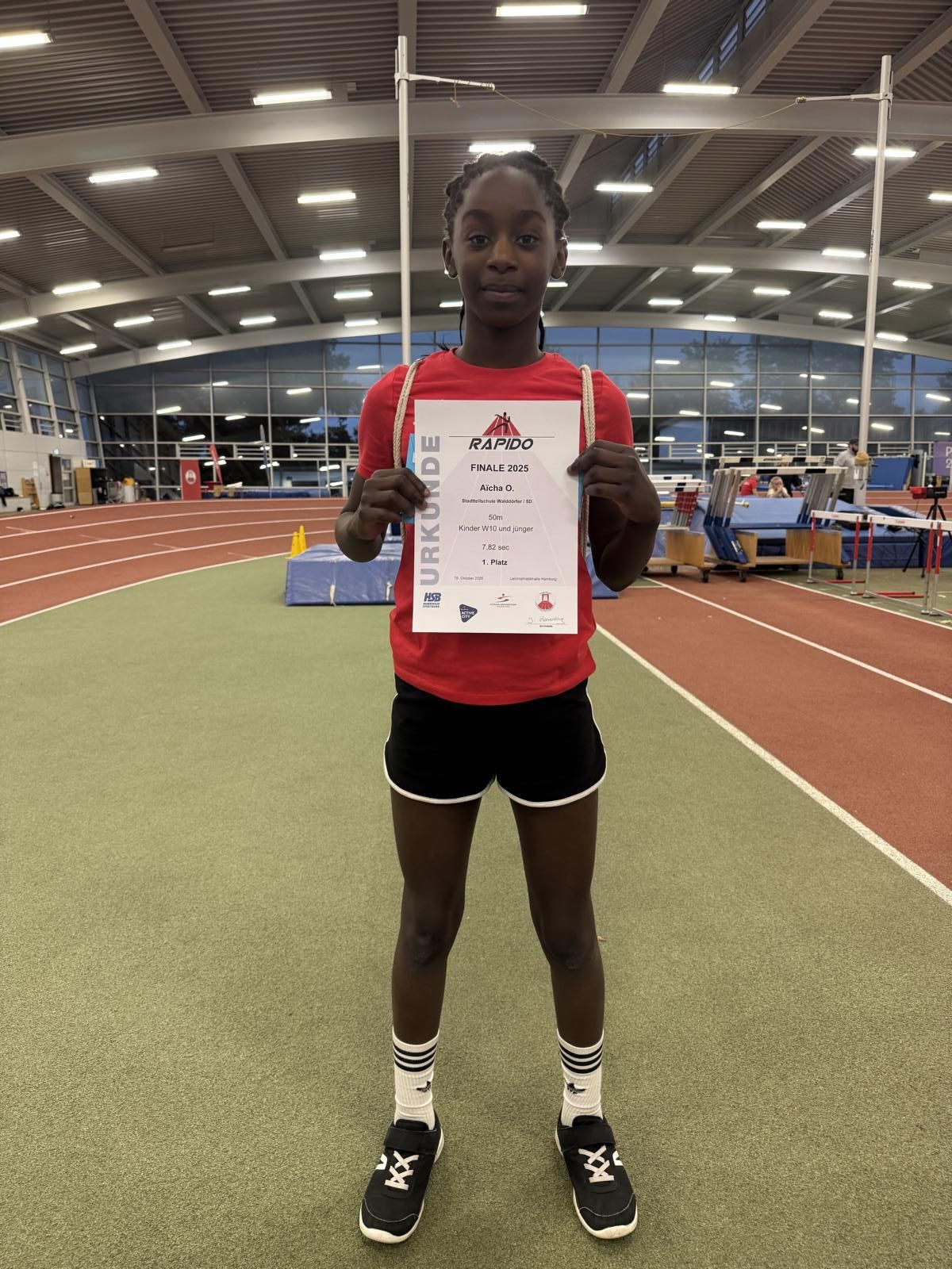 Am 15. Oktober 2025 nahm Aicha in der Leichtathletikhalle Hamburg am Talentsichtungswettbewerb „Rapido“ des Hamburger Leichtathletikverbandes teil – und überzeugte mit einer herausragenden Leistung.