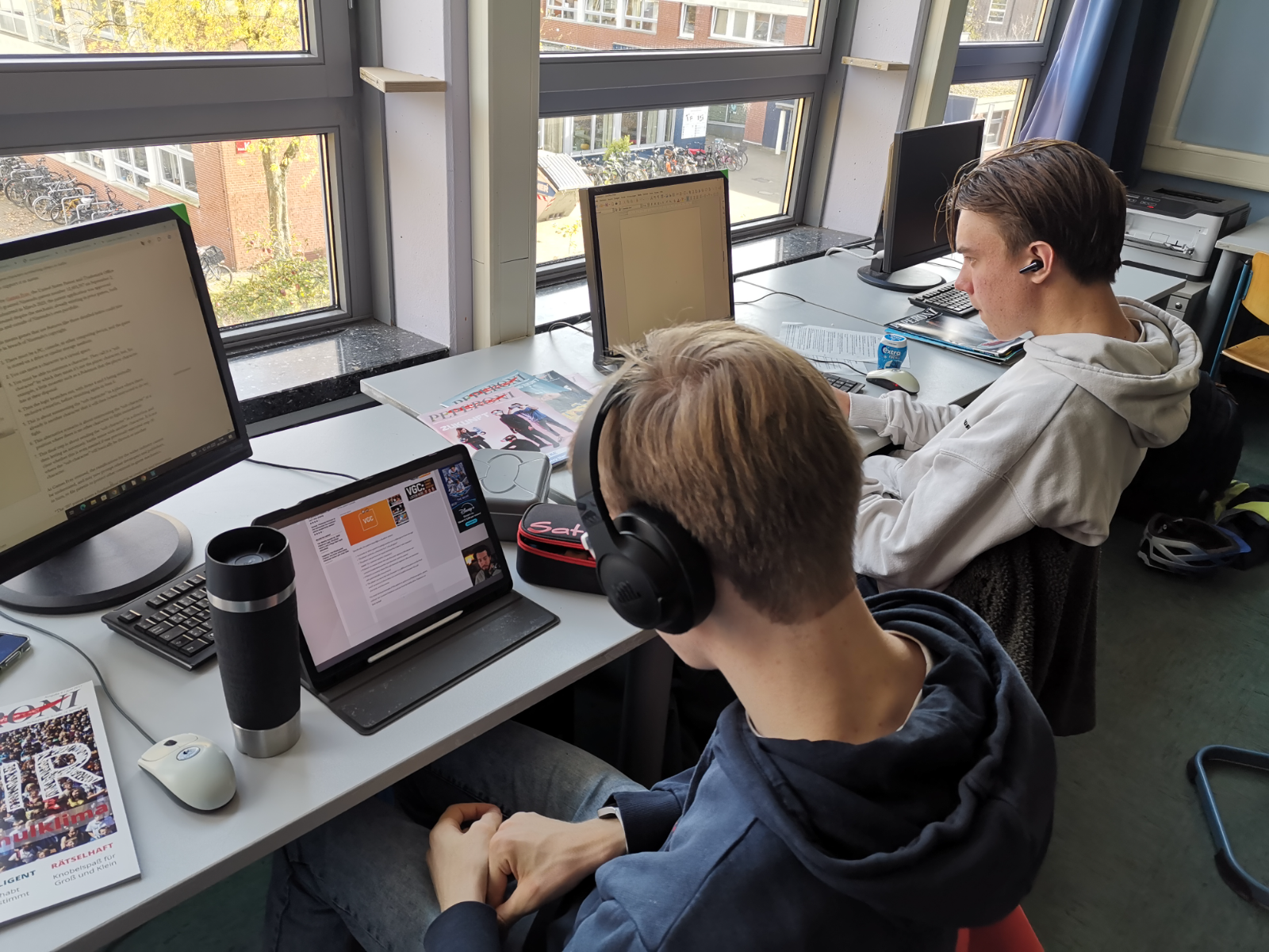 Damit alle die Möglichkeit haben, am Entstehungsprozess einer Zeitung teilzunehmen, wurde ein Vormittag zur gemeinsamen Planung und Entwicklung eingeführt. Unter der Leitung der Chefredakteur*innen Eirik (Jg. 13) und Lotta (Jg. 13) wurden im Plenum und in Arbeitsgruppen Inhalte erarbeitet, Interviews vorbereitet, Fotos geschossen, Wettbewerbe geplant und Layoutentwürfe strukturiert.